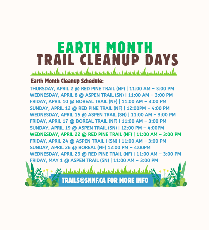 Cleanup dates and locations can be found on the Earth Month Trail Cleanup poster below.